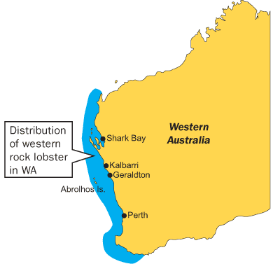 Distribution and Habitat: About eight species of rock lobster live in WA waters but the most abundant by far is the Western Rock Lobster. They are a temperate species, only found on the continental shelf off the coast, with most living between Perth and Geraldton.